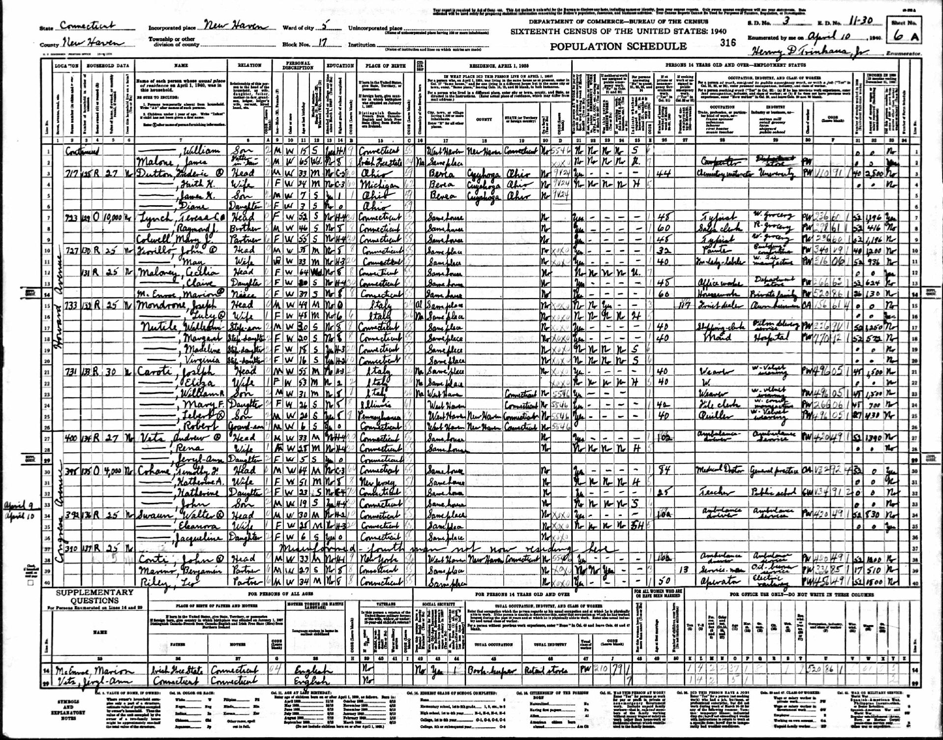 | Census | 1940 | New Haven, New Haven County, Connecticut, USA |