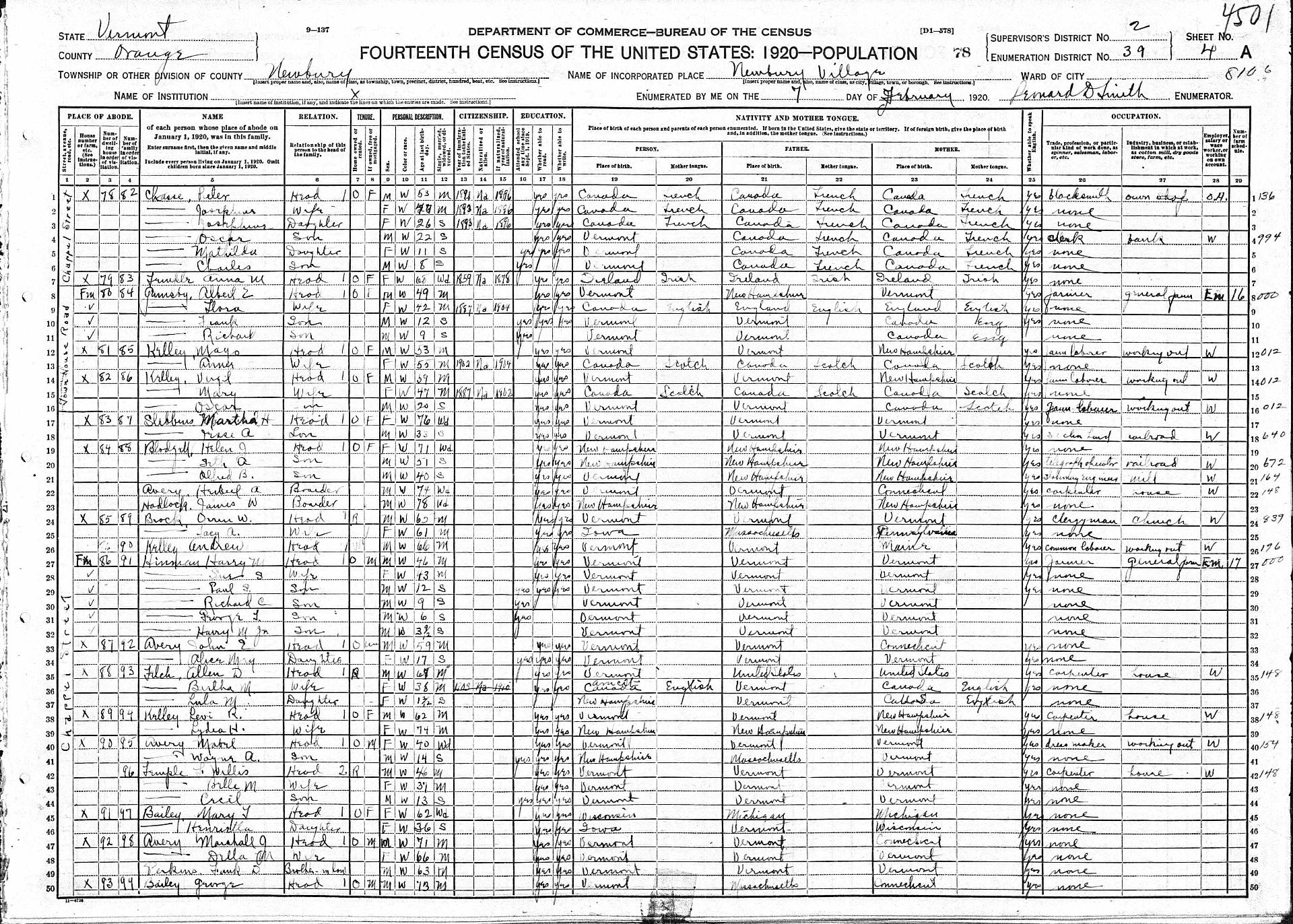 Census | 1920 | Newbury, Orange County, Vermont, USA ![]() |