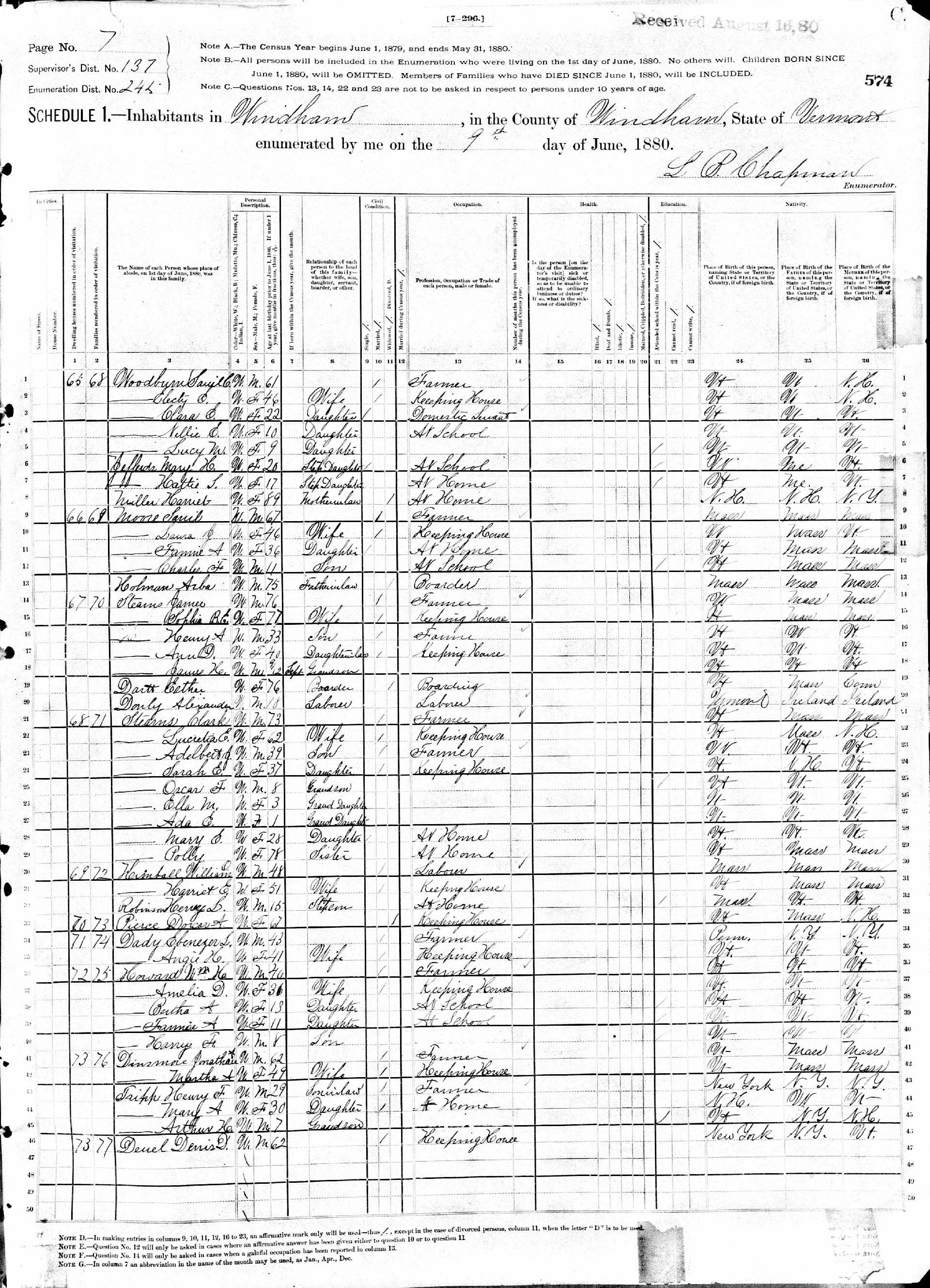 Census | 1880 | Windham, Windham County, Vermont, USA ![]() |