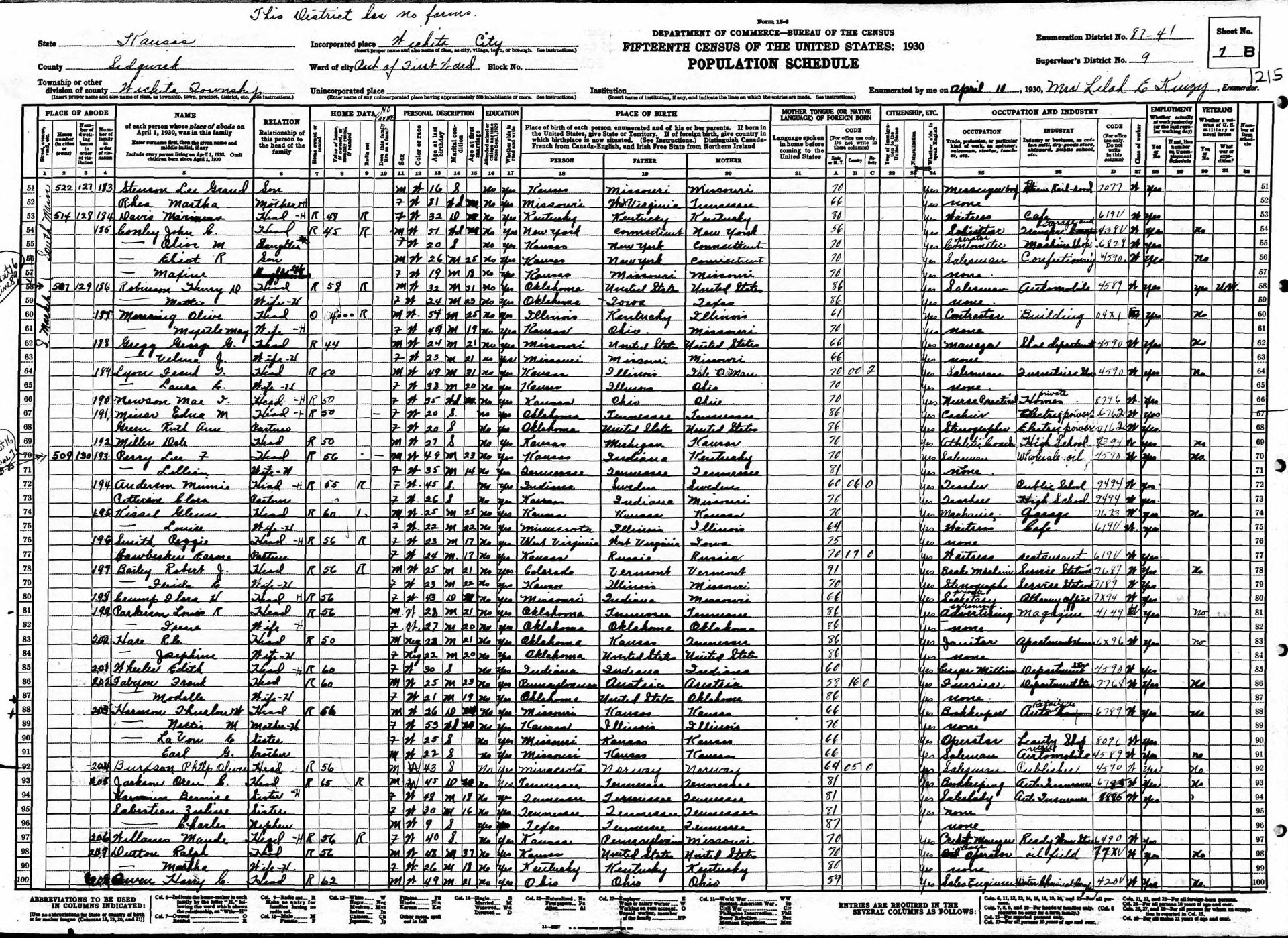 Census | 1930 | Wichita, Sedgwick County, Kansas, USA ![]() |