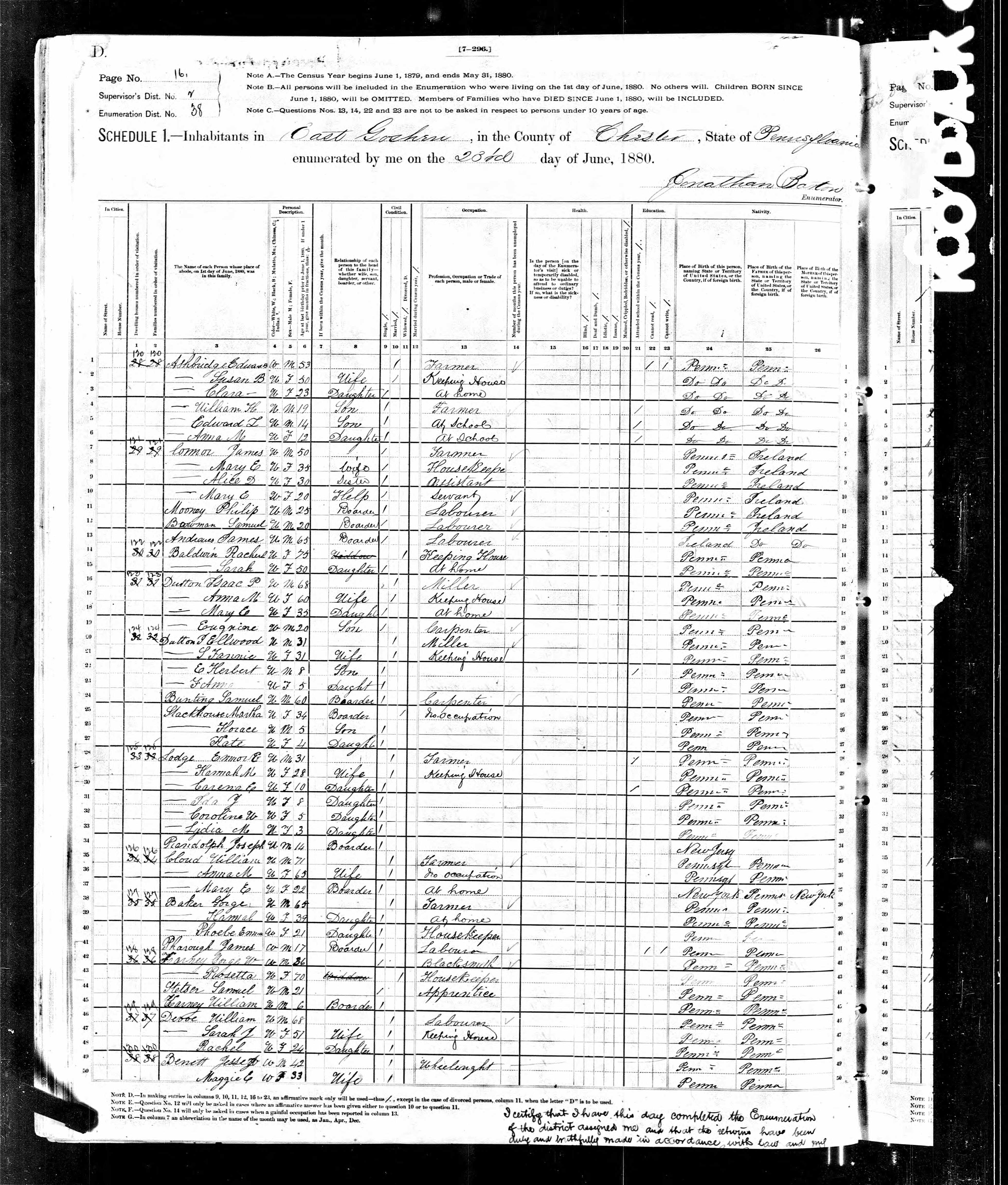Census | 1880 | East Goshen, Chester County, Pennsylvania, USA ![]() |