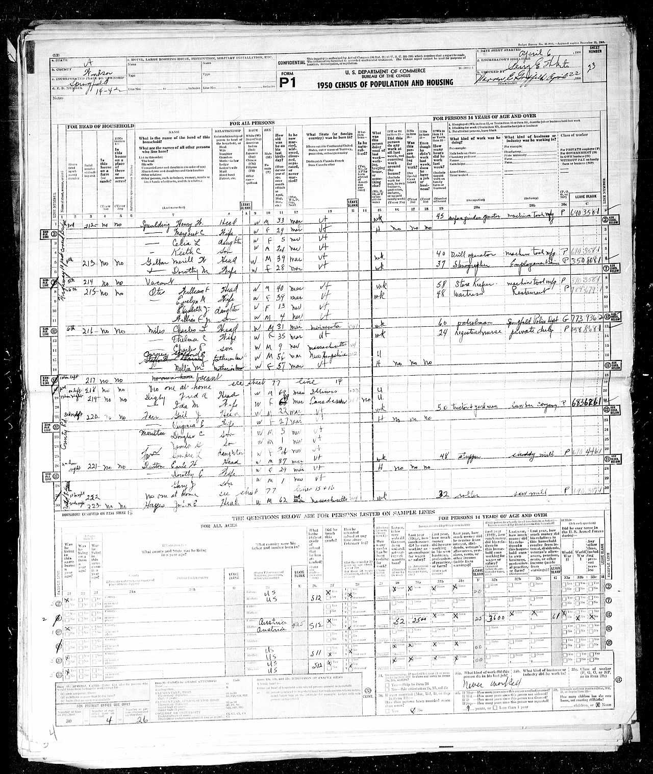 Image | | Transcript | Ln | Hhold | Surname | Given | Relation | Gender | Race | BirthDate | Age | Status | BirthPlace | BirthPlace of Father | BirthPlace of Mother | Immigration Year | Occupation | Veteran | Street |