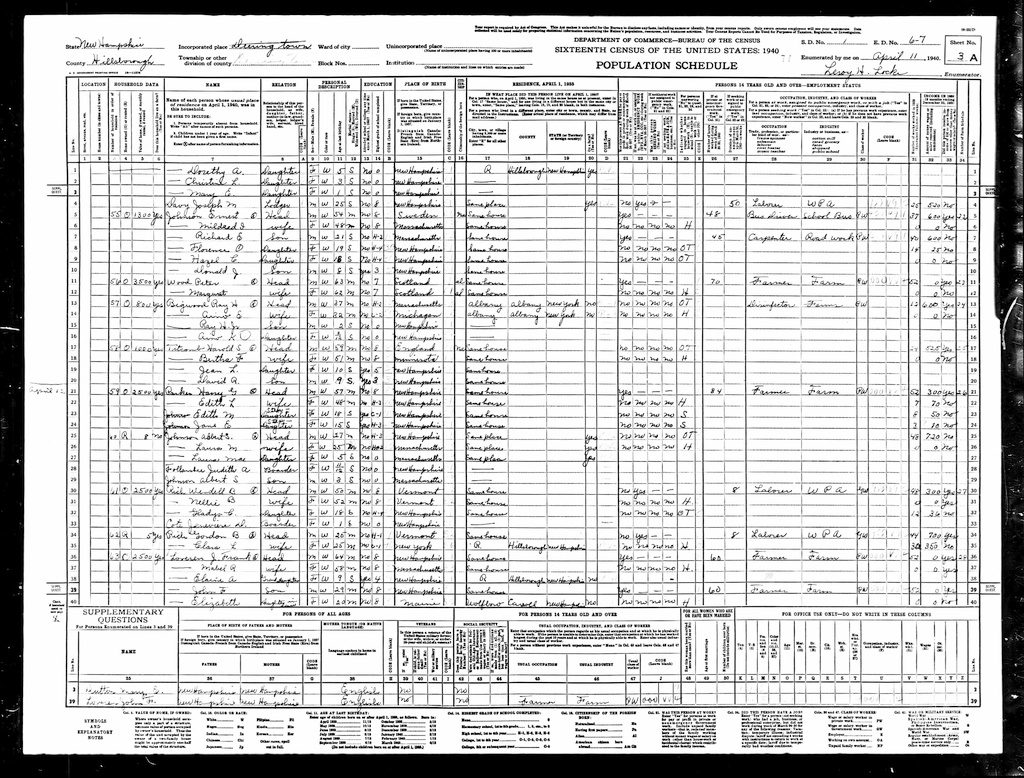 Census | 1940 | Deering, Hillsborough County, New Hampshire, USA ![]() |