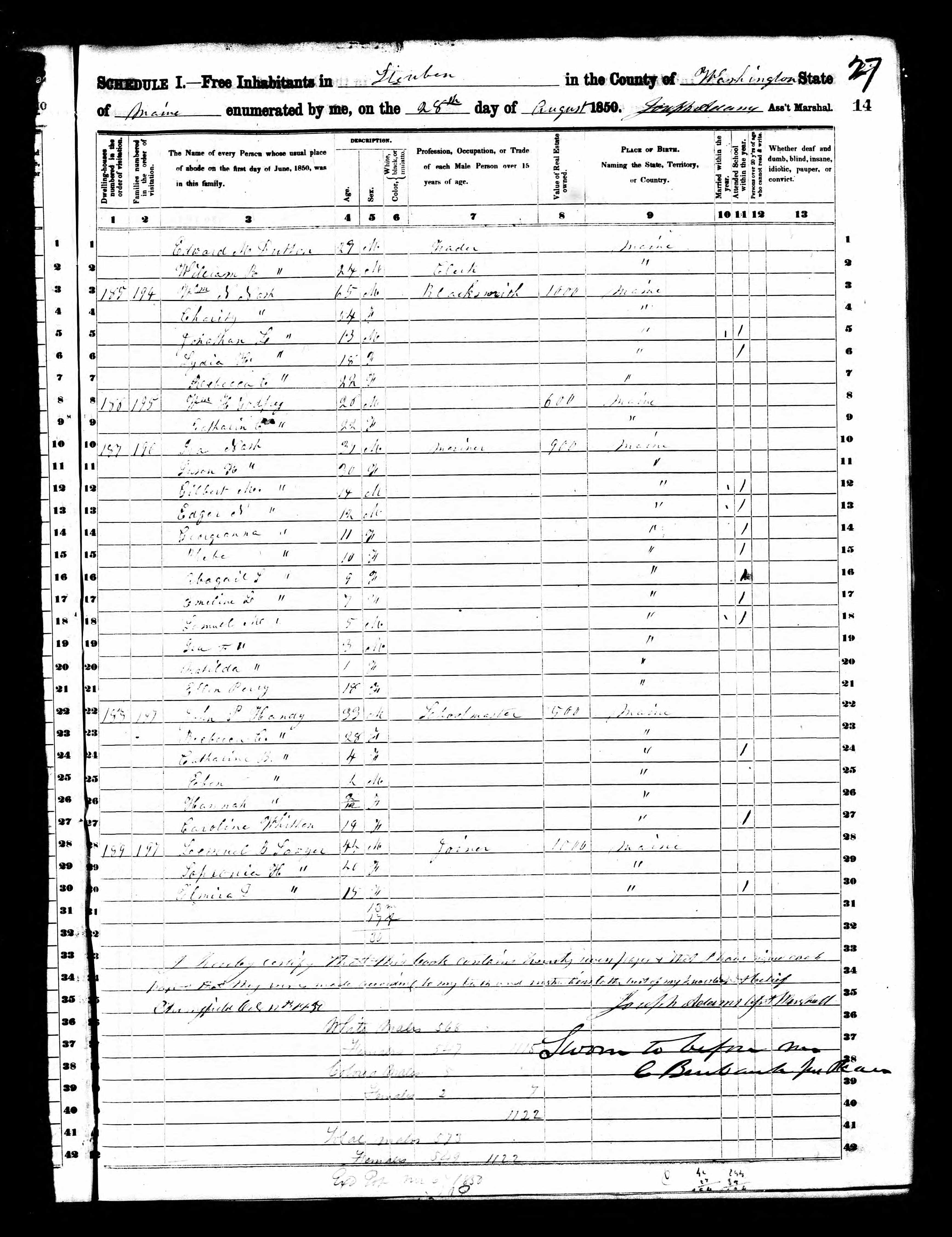 Census | 1850 | Steuben, Washington County, Maine, USA ![]() |