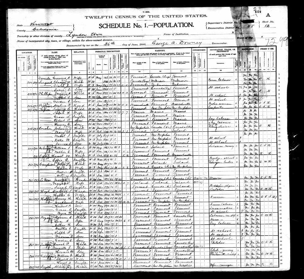 Census | 1900 | Lyndon, Caledonia County, Vermont, USA ![]() |