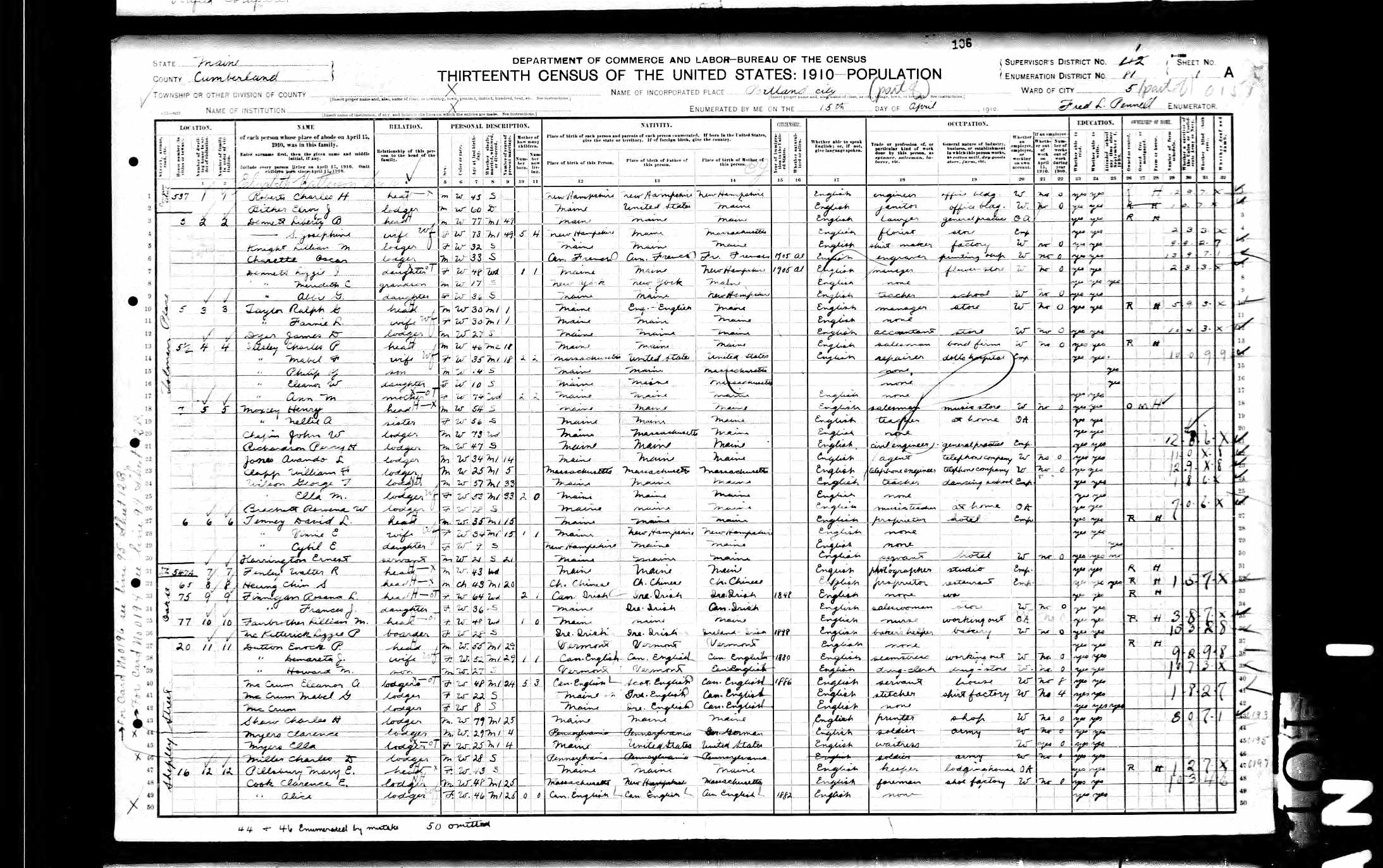 Census | 1910 | Portland Ward 5, Cumberland County, Maine, USA ![]() |