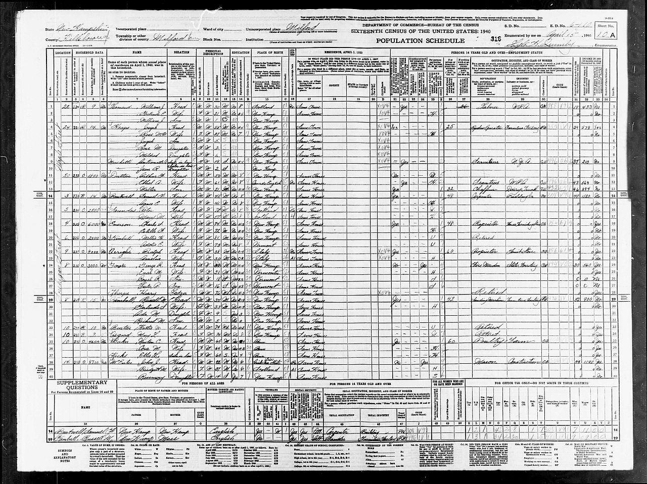 11 | 232 | Dutton | Arthur F | Head | M | White | 1884 | 56 | M | New Hampshire | New Hampshire | New Brunswick | | | | | 12 | 232 | Dutton | Ethel A | Wife | F | White | 1879 | 61 | F | Canada | Canada | Canada | 1898 | | | | 13 | 232 | Dutton | Walter | Son | M | White | 1919 | 21 | M | New Hampshire | New Hampshire | Canada | | | | |
