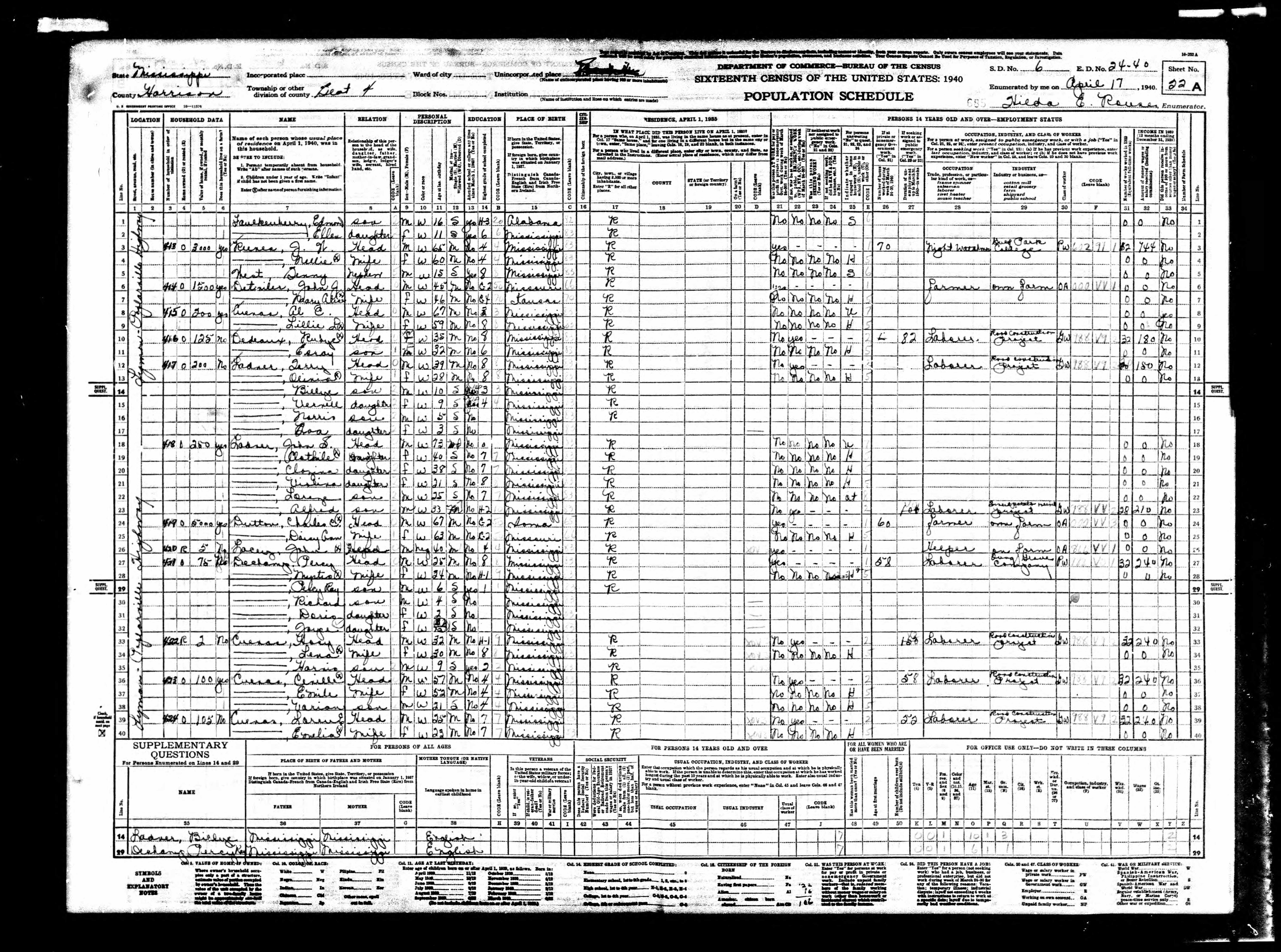 Census | 1940 | Harrison County, Mississippi, USA ![]() |