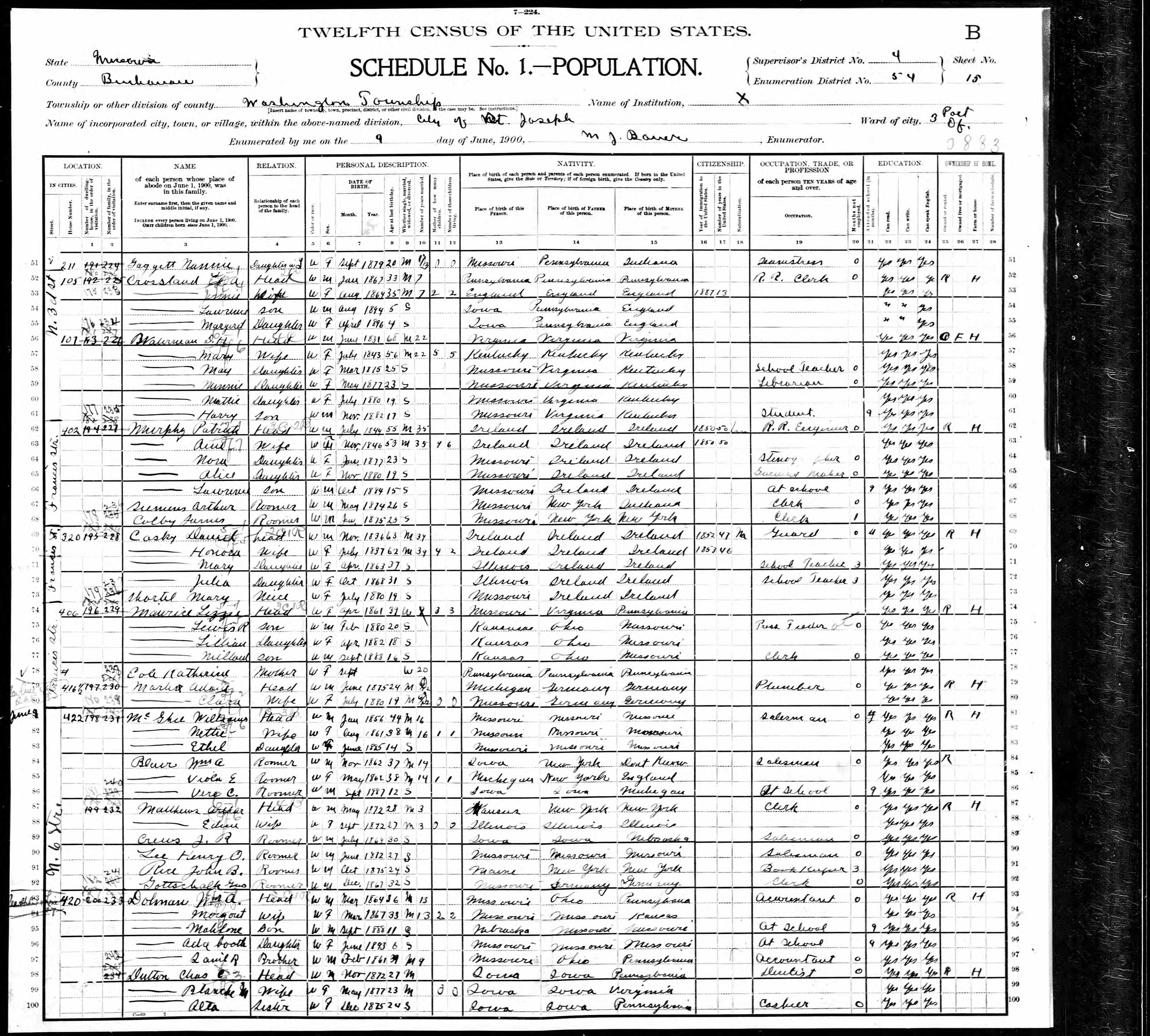 Census | 1900 | Saint Joseph, Buchanan County, Missouri, USA ![]() |