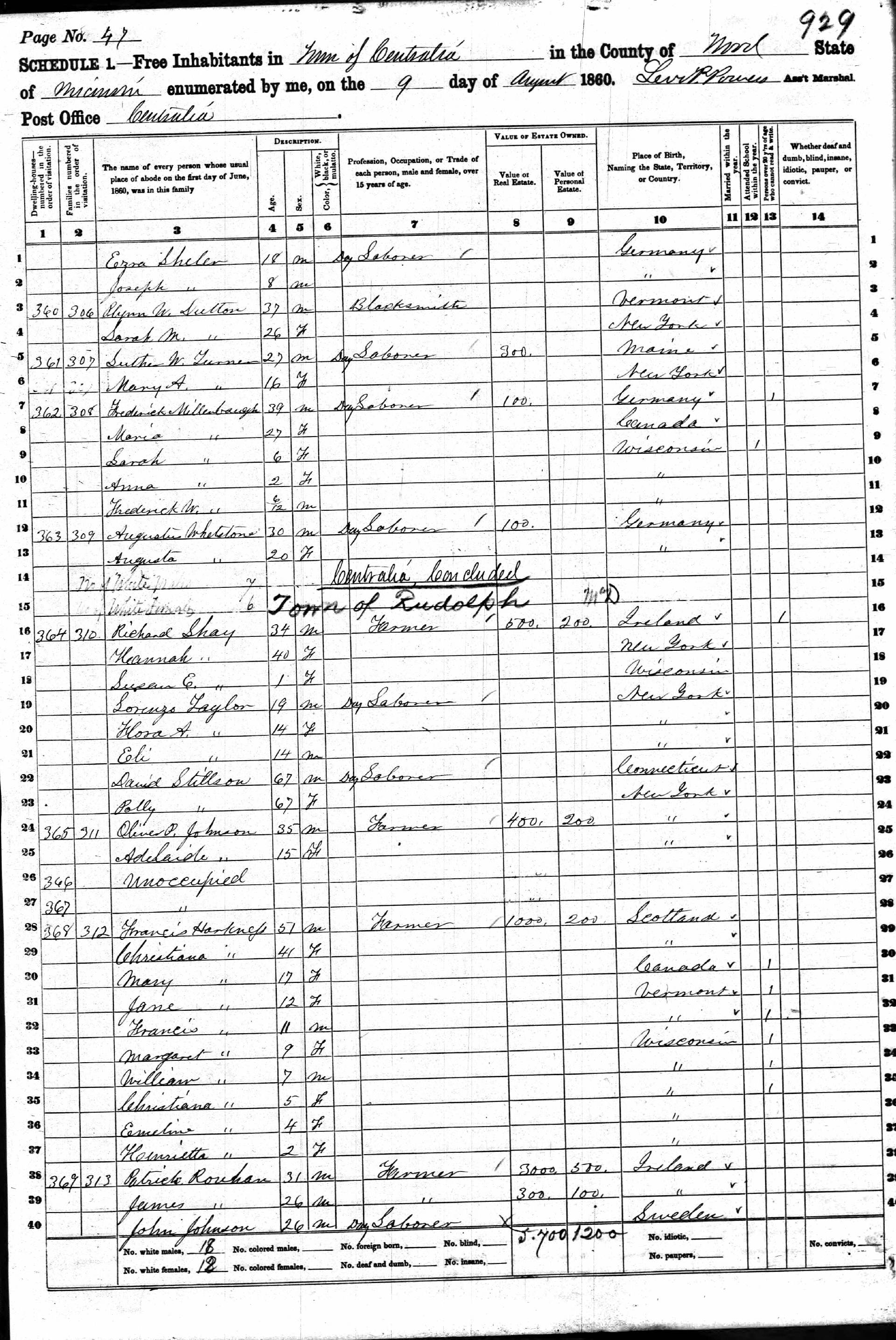 Census | 1860 | Rudolph, Wood County, Wisconsin, USA ![]() |
