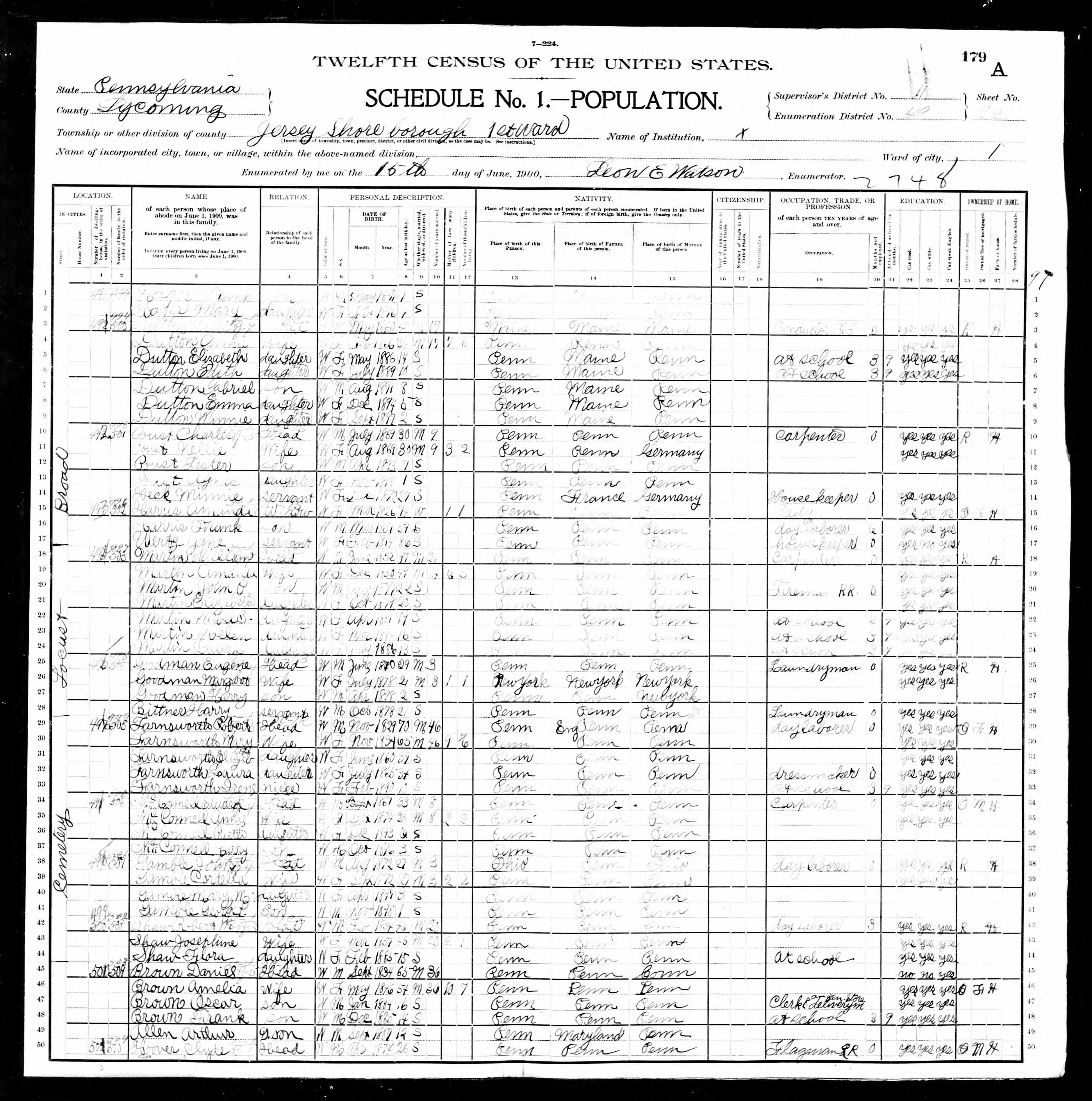 Census | 1900 | Jersey Shore, Lycoming County, Pennsylvania, USA ![]() |