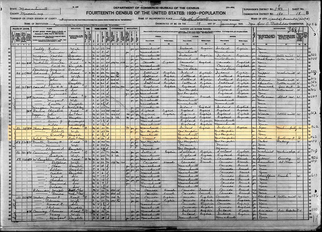 Census | 1920 | Lowell, Middlesex County, Massachusetts, USA ![]() |